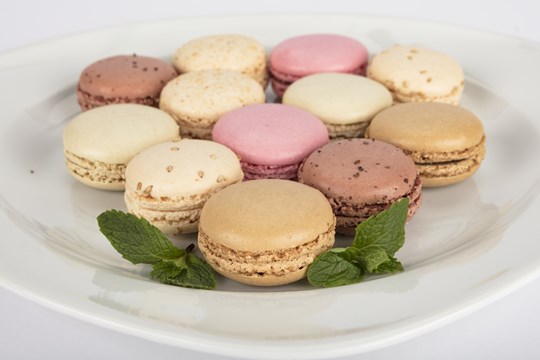 Top of the line assortment of 2 mini lime curd meringue tarts, 2 mini apricot tarts, 2 mini mango cheesecakes, 2 mini chocolate brownie pyramids, 2 mini passion fruit coconut cakes, 2 mini blood orange cakes, and 2 pistachio white chocolate cakes.